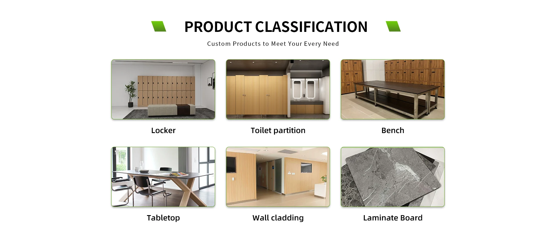 Main categories: Locker, Toilet Partition, Wall Panel, Compact Laminate, HPL Table Top